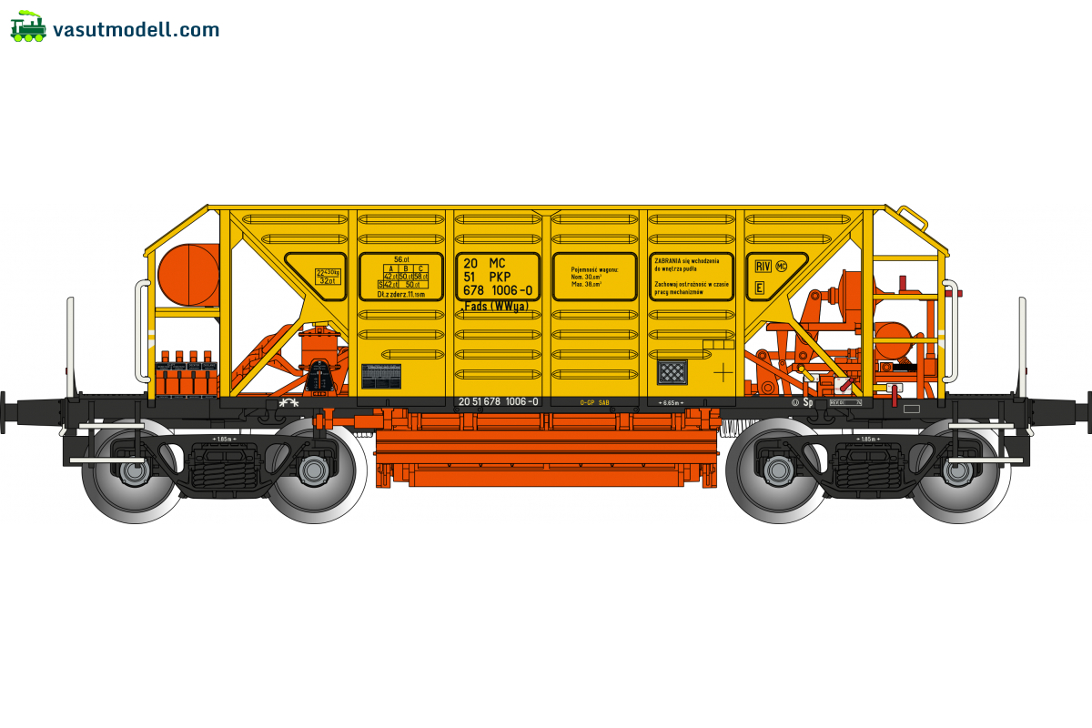 678001 Különleges építésű, nyitott, önürítős teherkocsi, Fads, PKP, IV