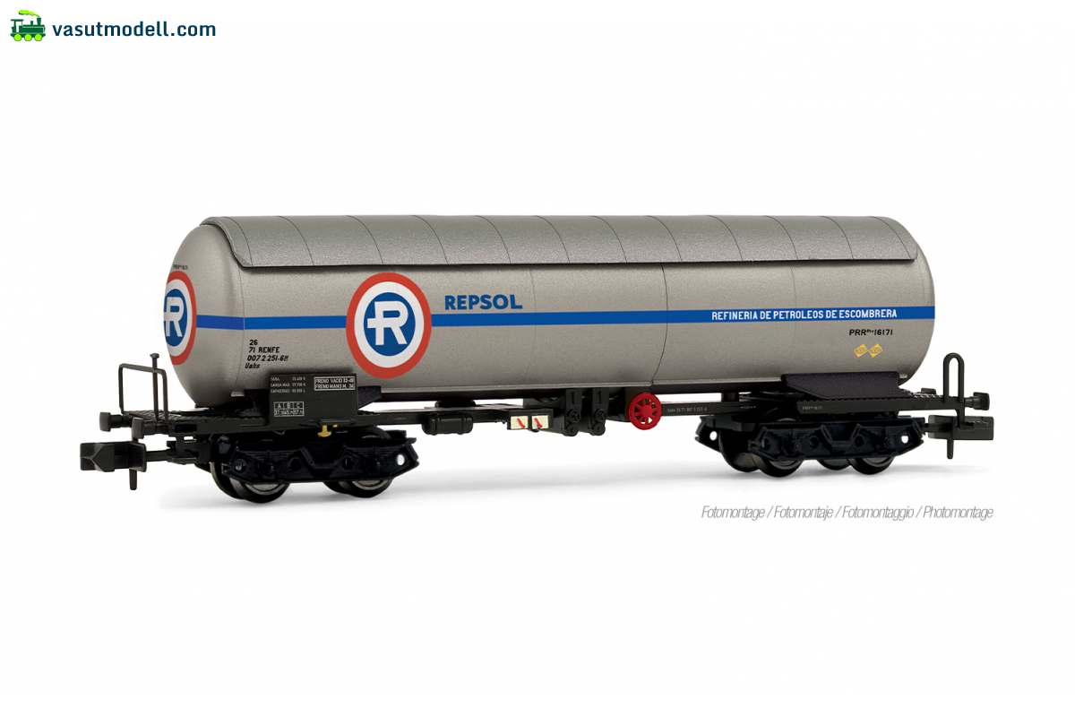 6723 RENFE, 4-axle crude oil tank wagon PRR, Repesa-Repsol white-orange livery, ep. III-IV