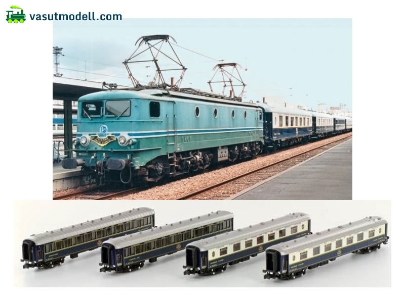 KATO 23218-1 CIWL Riviera Express készlet (Villanymozdony SNCF BR7102 + 2 hálókocsi + 2 étkezőkocsi)