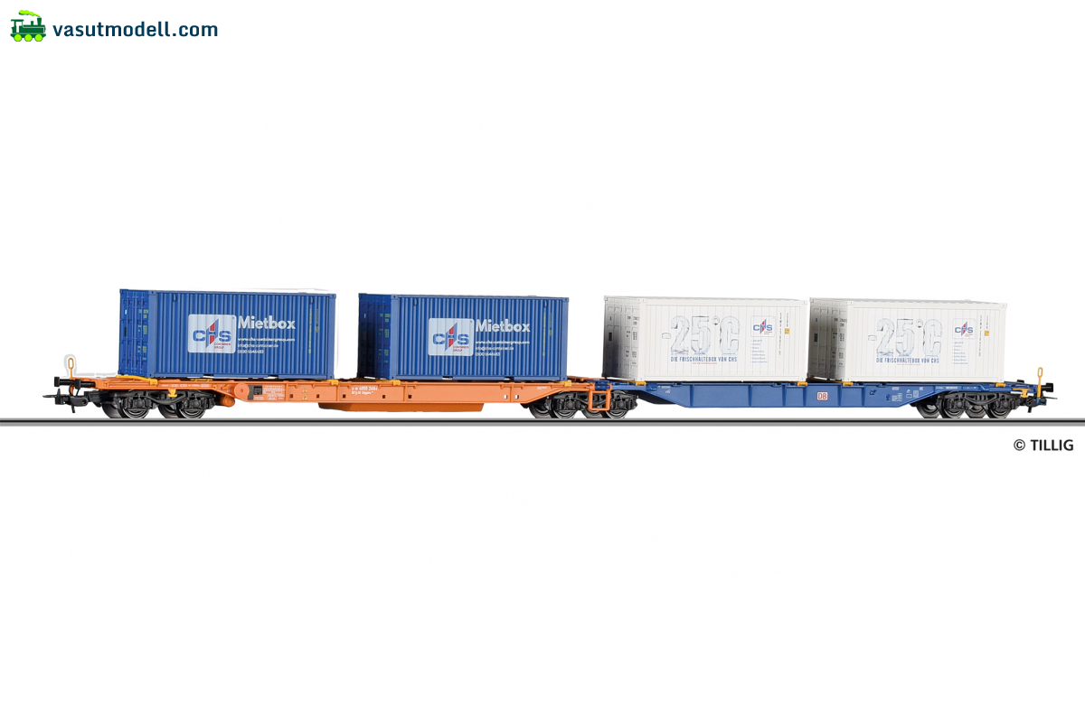 TILLIG 77071 Doppeltragwagen Sdggmrss, ÖBB, beladen mit zwei Containern, VI -FORMNEUHEIT-