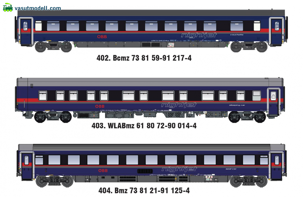 MW2602 3er Set Nachtzugwagen ÖBB Nightjet, Ep.VI, DANI