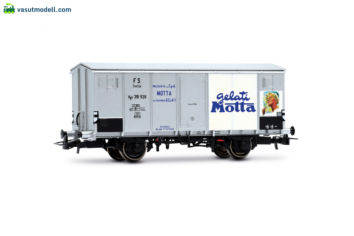 Rivarossi 6711  FS, 2-axle refrigerated wagon Hgb, metallic body, silver   Gelati Motta  , III