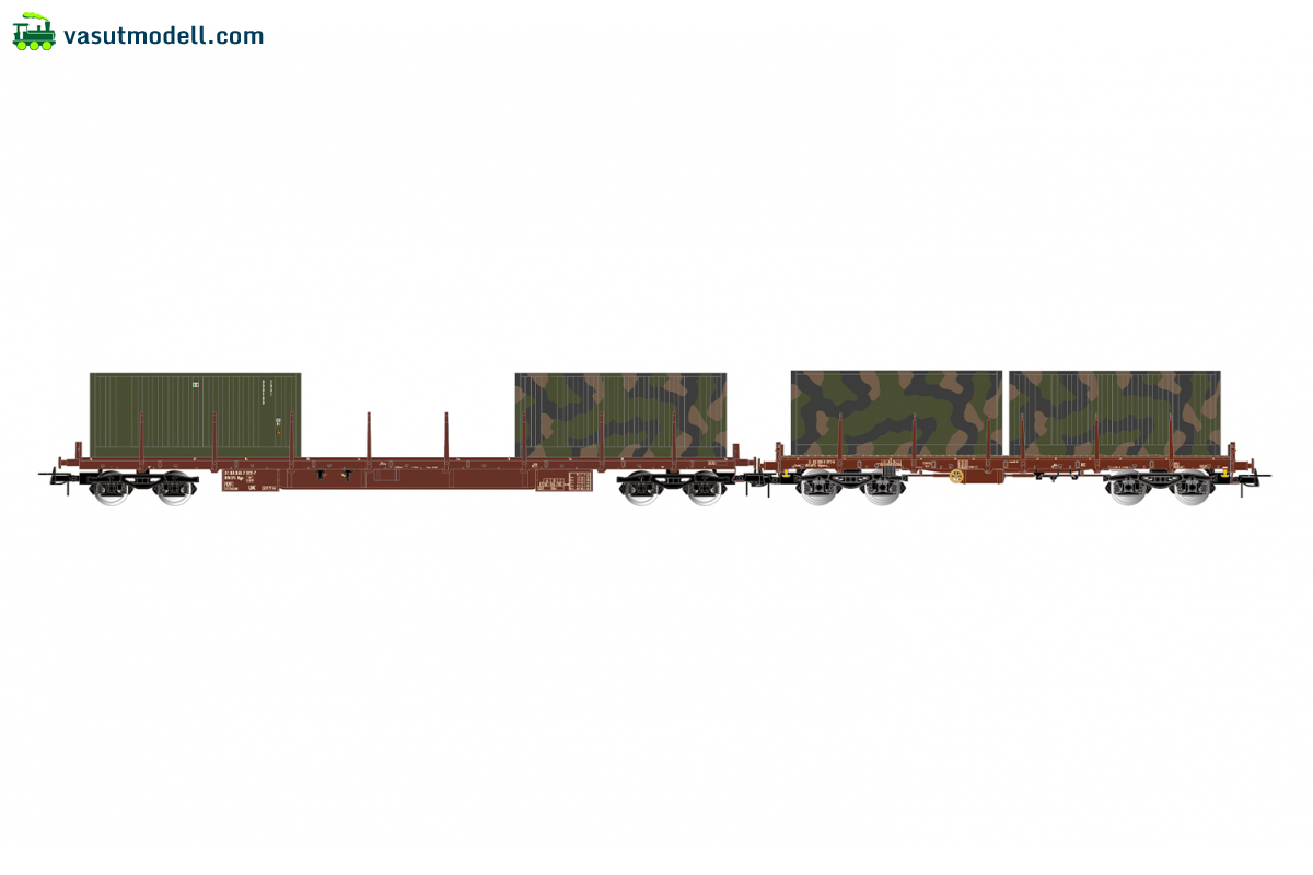 Rivarossi 6716 FS, 2-unit pack flat wagons Rgs + Rgmms, brown, with military containers, IV-V