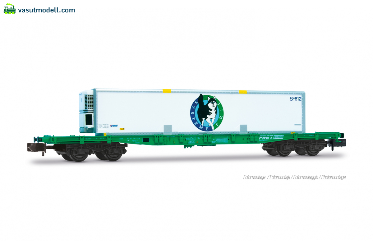 ARNOLD 6726 SNCF, S70 container wagon, green livery, loaded with Syst?me Fril reefer container, ep. V