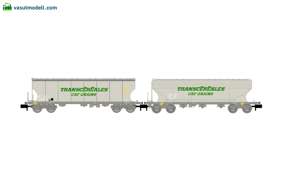 ARNOLD 6732 SNCF, 2-unit pack cereal hopper wagons Transcéréales CAF Grains , flat + rounded w., ep. IV-V